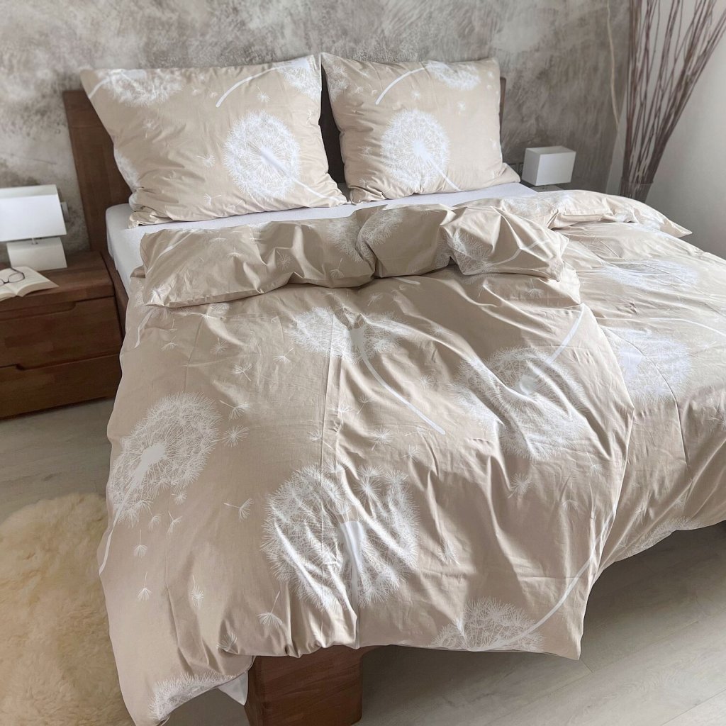 Jemný květinový vzor na béžovém podkladu připomíná okamžik, kdy vánek odnáší chmýří pampelišek a krajina utichá. Povlečení poutá pozornost nenápadným šarmem. Béžový tón navíc přináší jemné teplo, které z ložnice vykouzlí to nejútulnější místo na světě. 100% hladká bavlna vás obejme měkkostí, na kterou si snadno zvyknete.