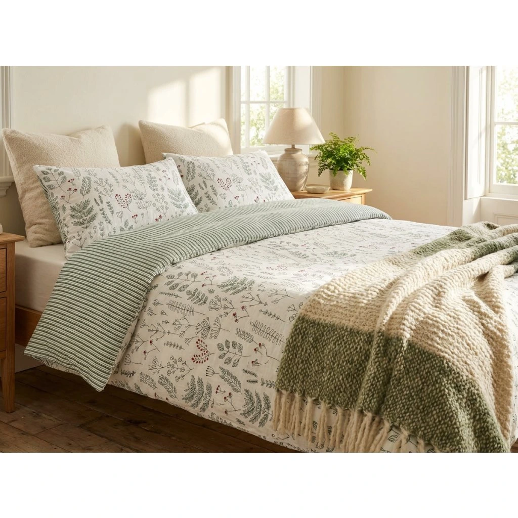 Francouzské bavlněné povlečení Herbář Zelený oboustranný Šev uprostřed