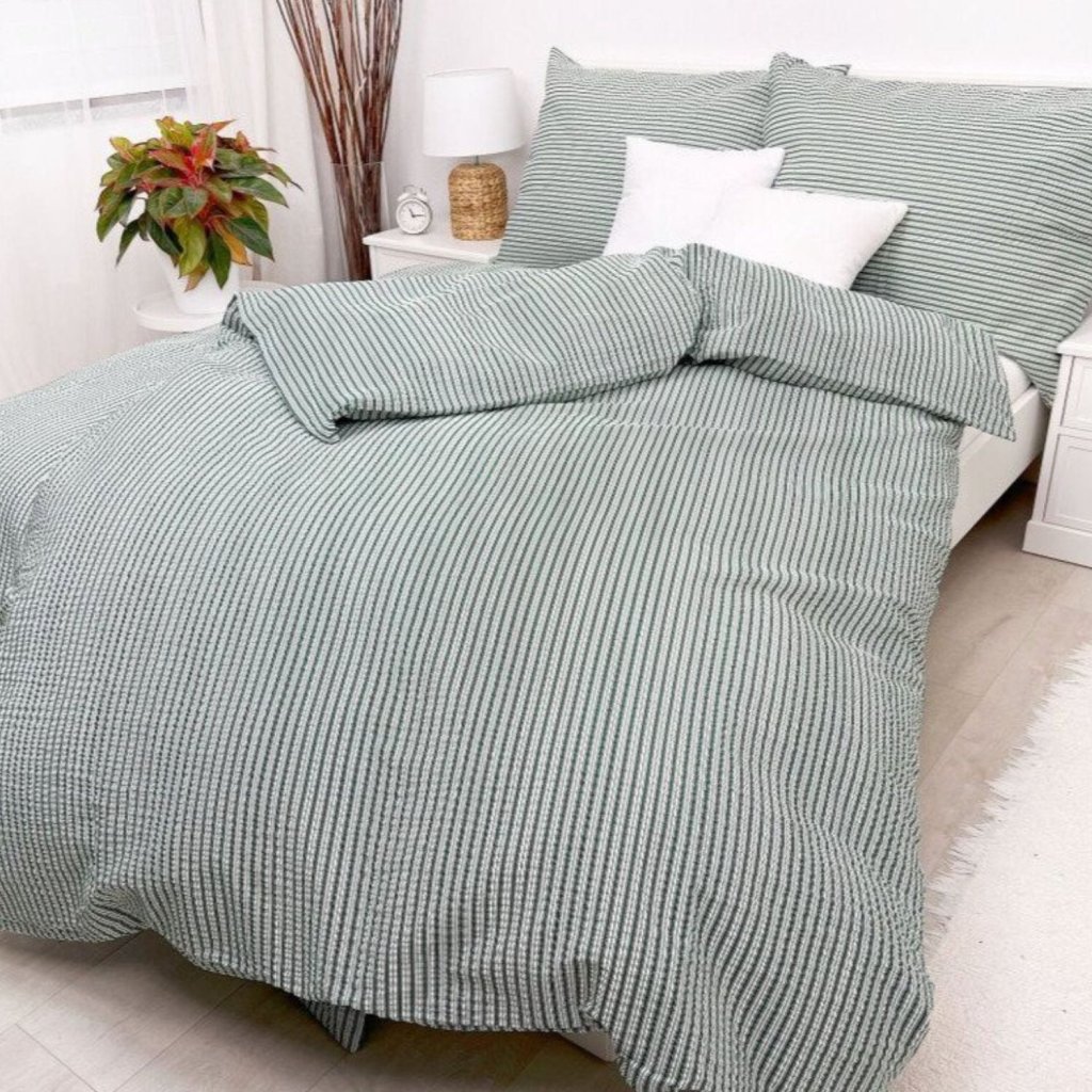 Francouzské bavlněné povlečení Pruhy Zelené Šev uprostřed