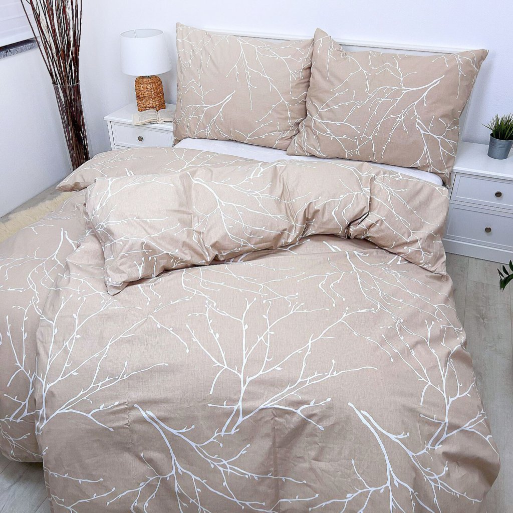 Francouzské bavlněné povlečení Větvičky béžové Šev uprostřed