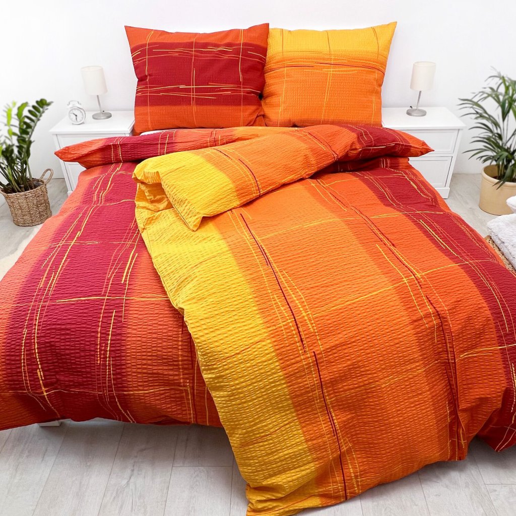 Francouzské krepové povlečení Cákance oranžové Šev uprostřed