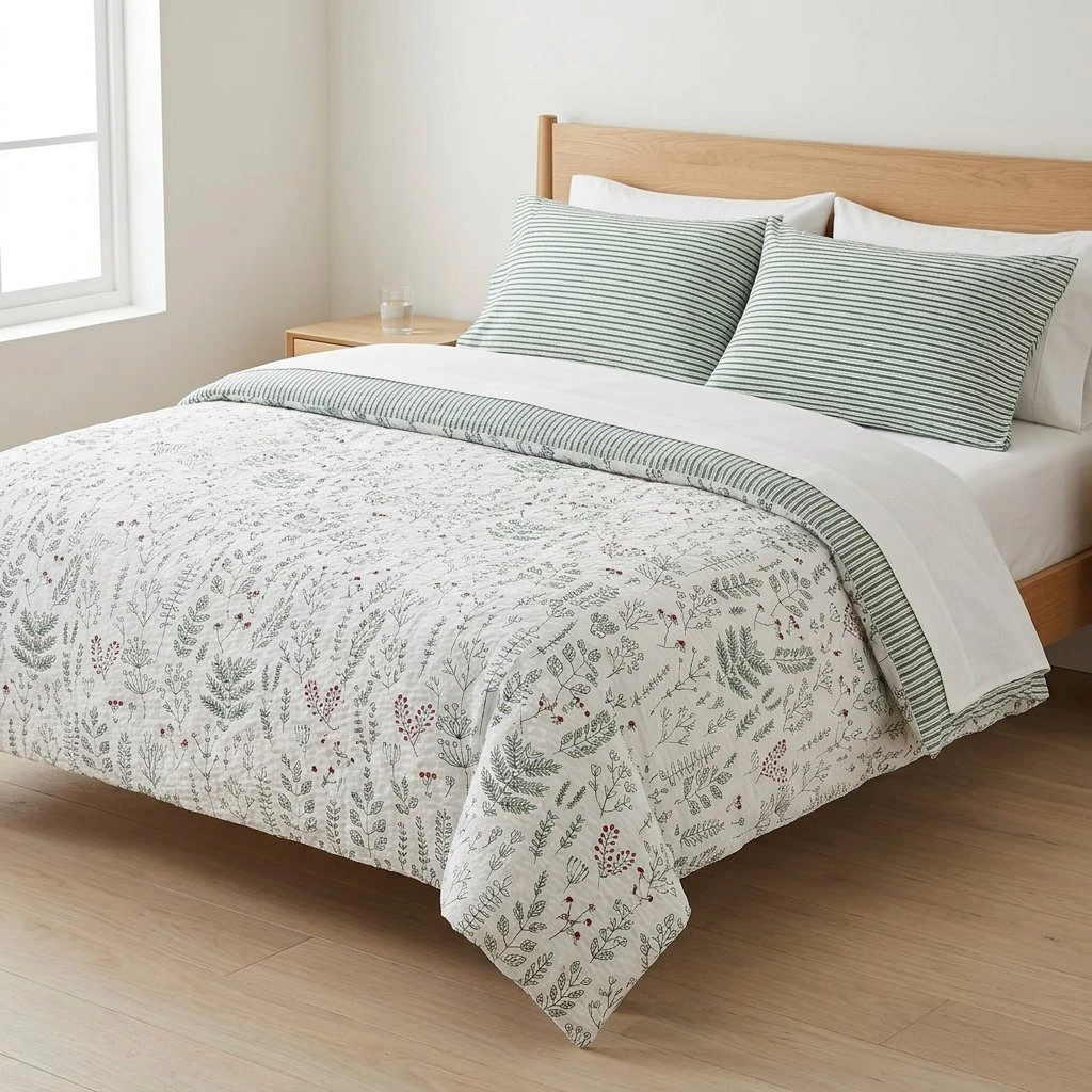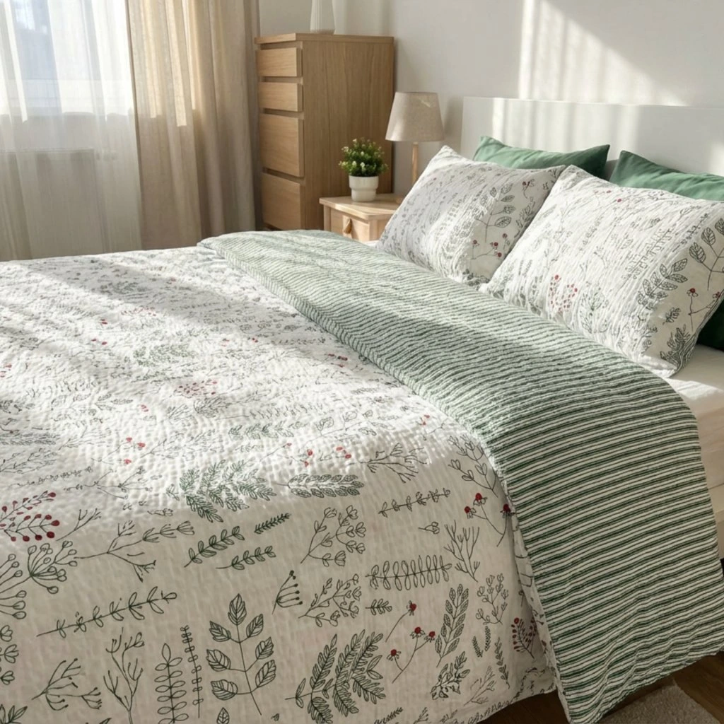 Francouzské krepové povlečení Herbář Zelený oboustranný Šev uprostřed