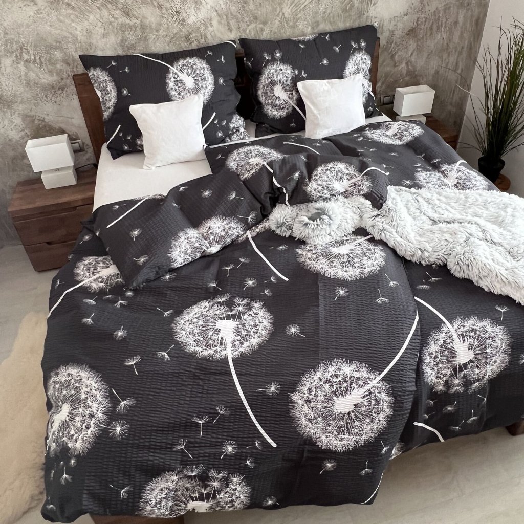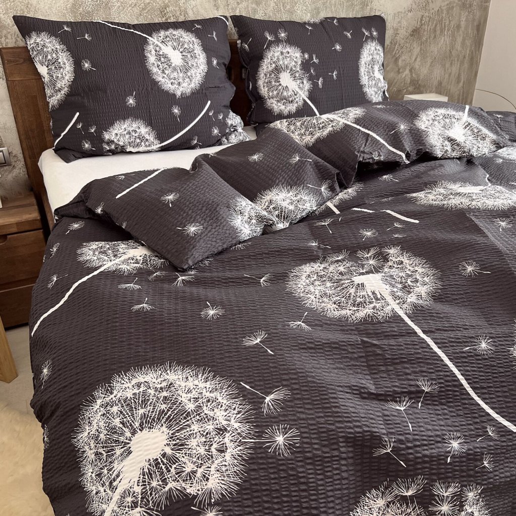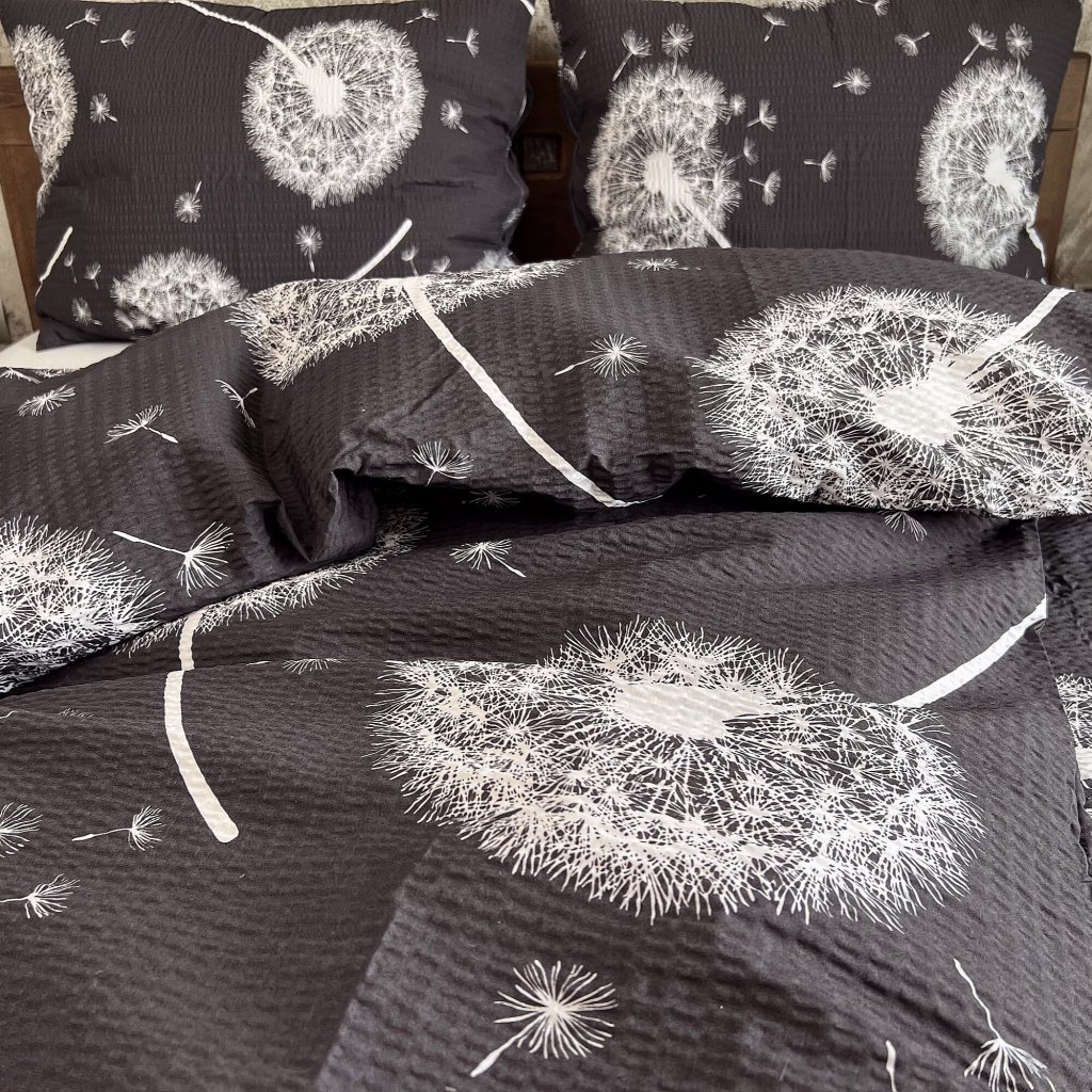 Francouzské krepové povlečení Pampelišky šedé Šev uprostřed