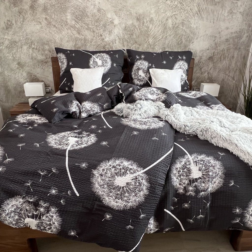 Francouzské krepové povlečení PAMPELIŠKY ŠEDÉ