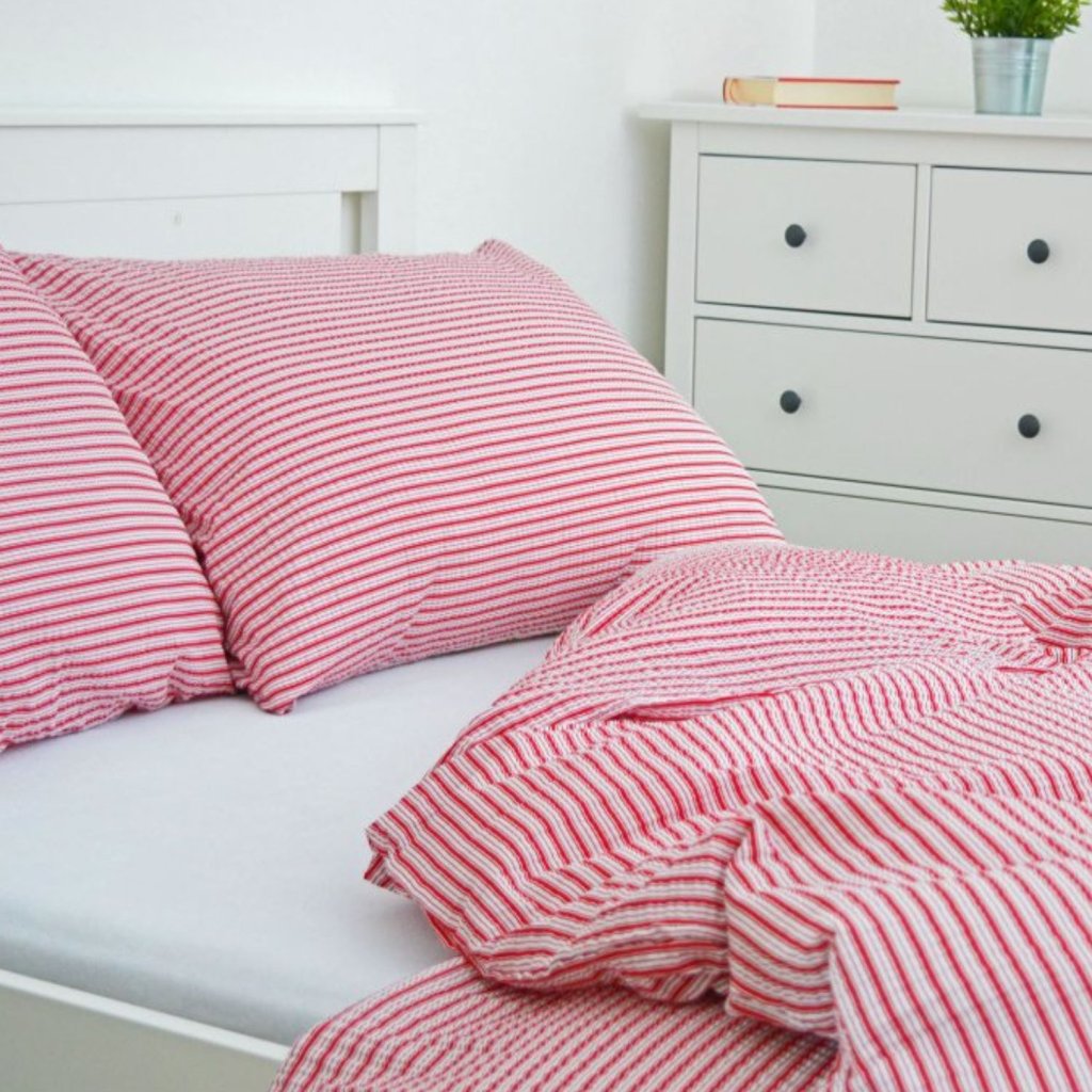 Metráž krep - Pruhy červené