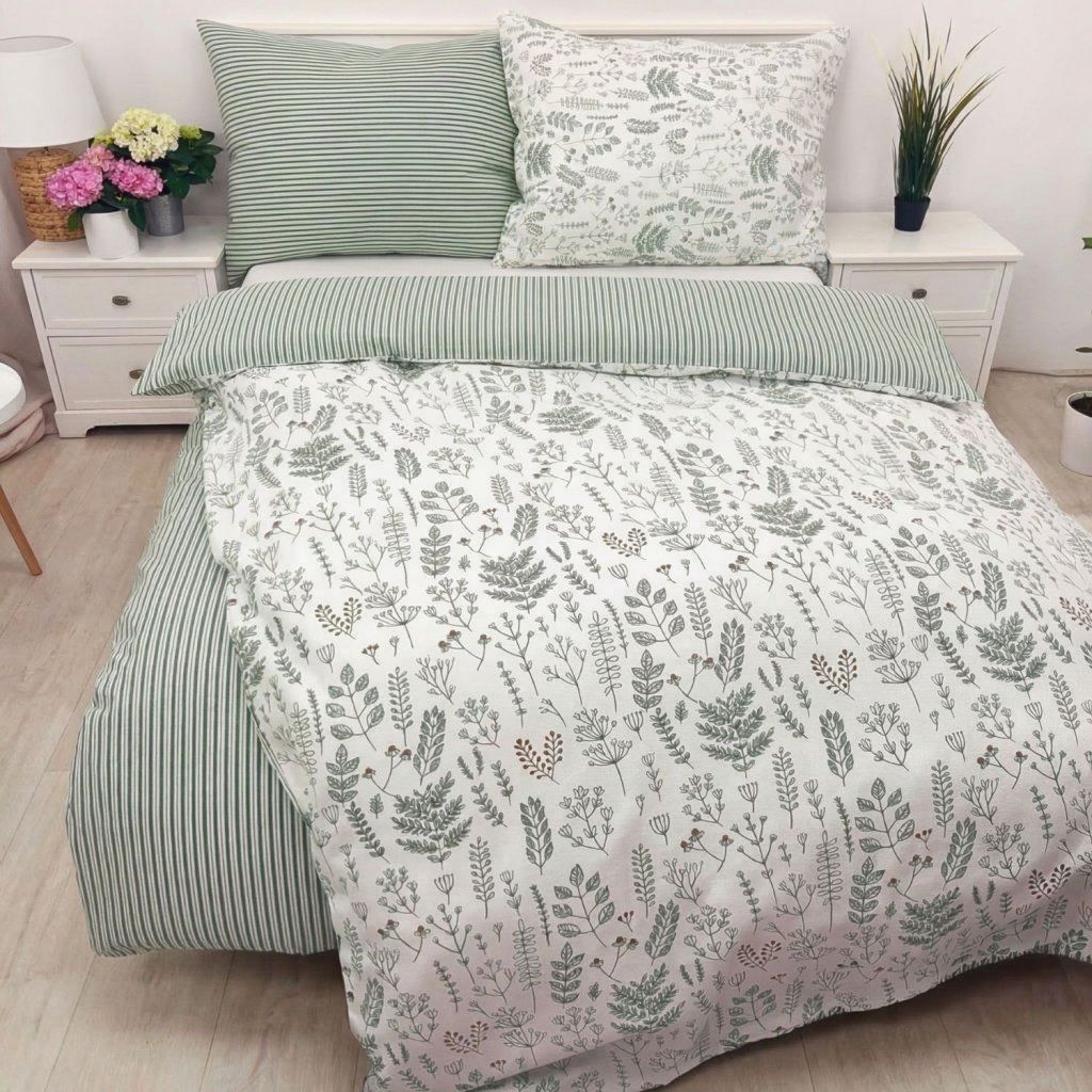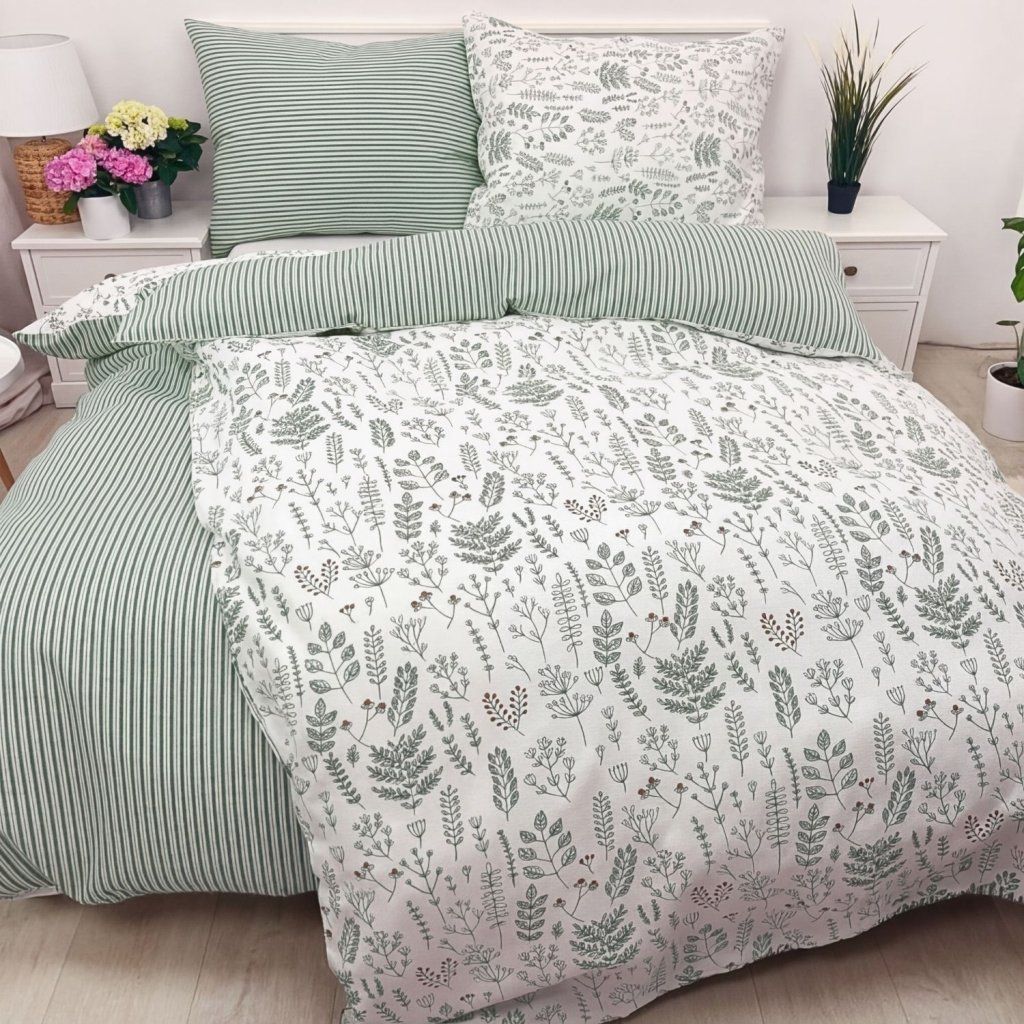 Ako keď listujete starým herbárom, kde každá rastlina nesie svoj príbeh. Obliečky Herbár prinášajú do spálne pokojnú krásu lúčnych kvetov, zatiaľ čo druhá strana so zeleno-bielymi pruhmi predstavuje nadčasovú klasiku. Obojstranné prevedenie umožňuje premeniť vzhľad spálne počas chvíľky. Hebká 100% bavlna vás pohladí pri každom dotyku. Tento vzor šijeme len v uvedených veľkostiach, francúzske prevedenie bohužiaľ nie je možné.