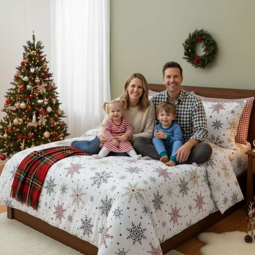 Francúzske krepové obliečky Snehové vločky červené Šev uprostred